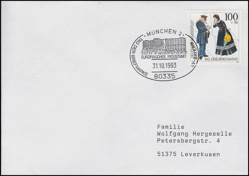 1692 Day of the Stamp Postman, Bf SSt Munich European Patent Office 31/01/93