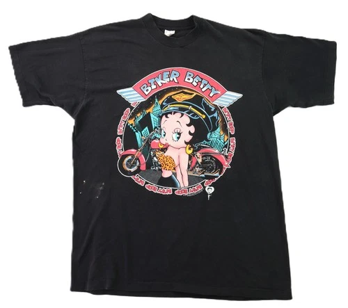 Vintage 90s US XL Black Biker Betty Boop Harley Motorcycle Single Stitch T Shirt