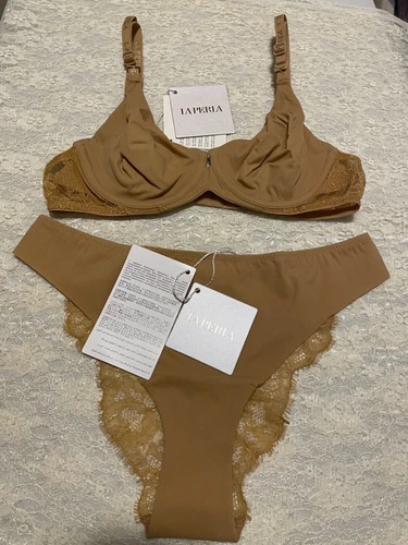 La Perla Shape Allure 32B XS Bra Brazilian Panty Set Nude Chantilly Lace