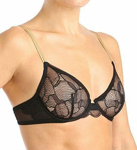 La Perla Lace Fantasy Iris 32B XS Full Cup Bra Thong Panty Set Black Bronze