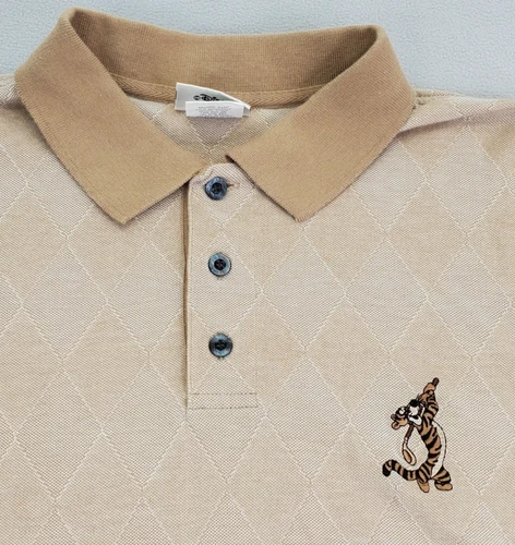 Tigger Golfing Polo Shirt Mens XXL Beige Tan Diamond Pattern Walt Disney World