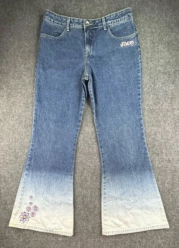 Vintage Y2K JNCO Jeans Women’s 15 USA Made Floral Embroidered Fade Bootcut Rare!