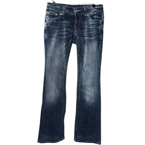 Y2K Miss Me Low Rise Boot Cut jeans Sz 27 JE5392B2L Buckle Exclusive embellished