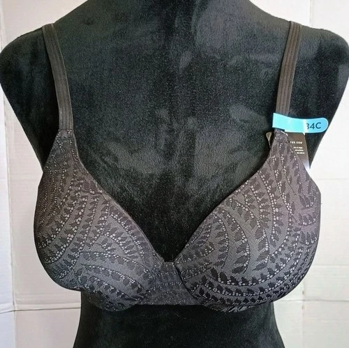Bali Smoothing Black Patterned Underwire T-Shirt Bra - Women Intimates Size 34C