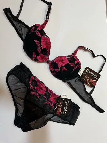 Cassandra Intimates Embroidered Bra 34C & Bikini Panty Medium