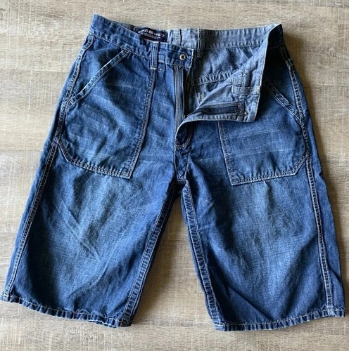Ecko Unltd Baggy Denim Shorts Mens 34 Y2K Hip Hop Skater Logo Blue 90s