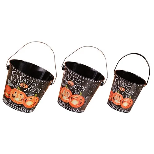 3 Pcs Small Handheld Buckets Tinplate Candy Holder Halloween for Trick Treating