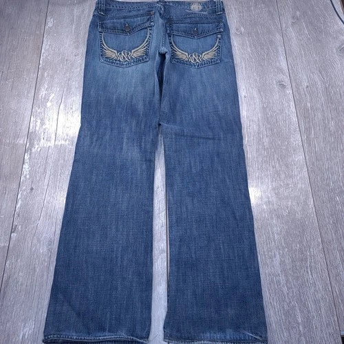 Rock & Republic Jeans Mens 36 Blue Bootcut Embroidered Wing Back Pocket