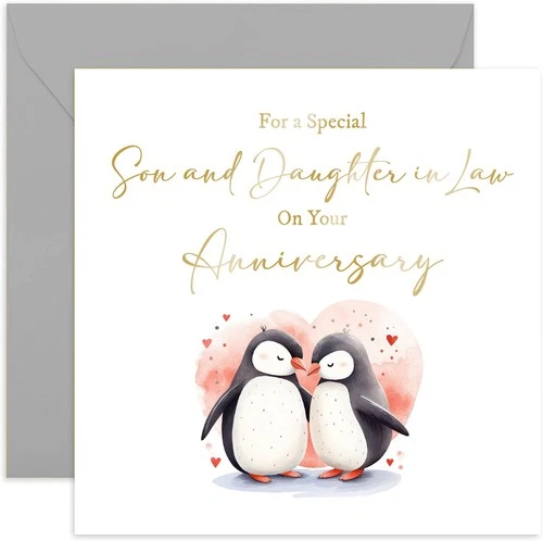 Son and Daughter in Law Anniversary Card - Cute Wedding Anniversary Card from P
