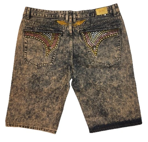 Robins Jean Motard Bedazzled Pants Jean Shorts Jorts Bermuda 38 X 16 Acid Wash