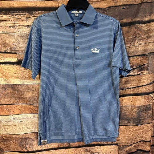 Peter Millar Men's Size S Blue Striped Crown Logo Polo Shirt 100% Cotton Short