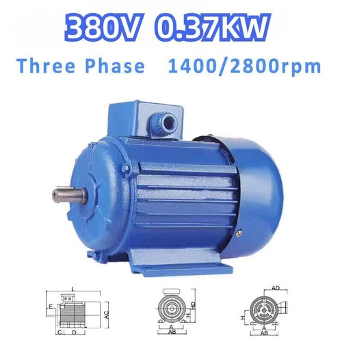 3Phase 380V 14/16mm Motor 1400/2800RPM 0.37KW Electric All Copper Motor 4/2 Pole
