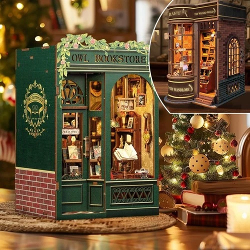 Book Nook Magical Dollhouse Wooden Miniature DIY Assembly Building Model Kit Owl