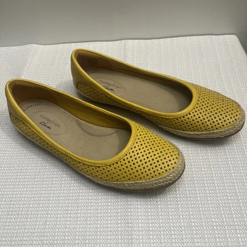 Clarks Women 6.5 Yellow Leather Perforated Espadrille Danelly Adira Slip-On