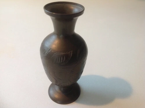 Vintage Solid Brass Hand Etched Flower Vase 4/78" Tall Made In India