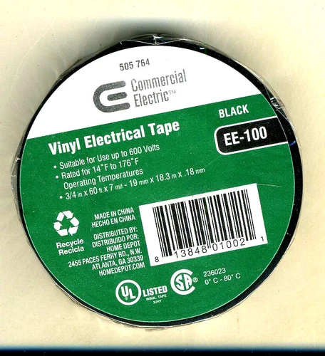 NEW Commercial Electric 3/4 in x 60 ft Columbia Vinyl Electric Tape BLACK #542