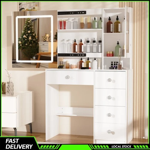 Dressing Table With 8 Shelves & LED Mirror Set Makeup Desk Vanity Table Xaljykqk
