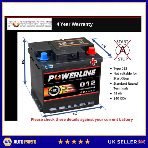Battery fits LEXUS UX250H UX200 2.0 2018 on 012 340A 44Ah 4Yr Warranty Powerline