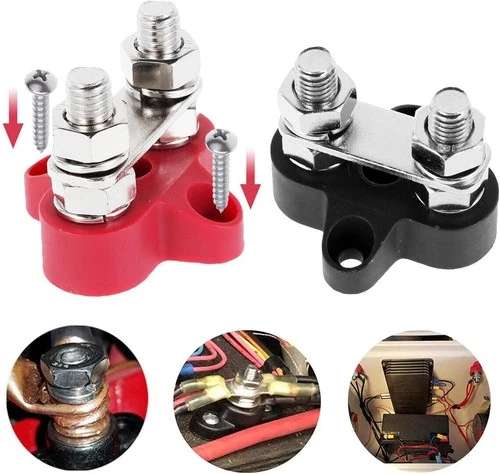 2PCS Bus Bars Power Distribution Block 12V-48V DC Bus Bar M8 Dual Studs for Car