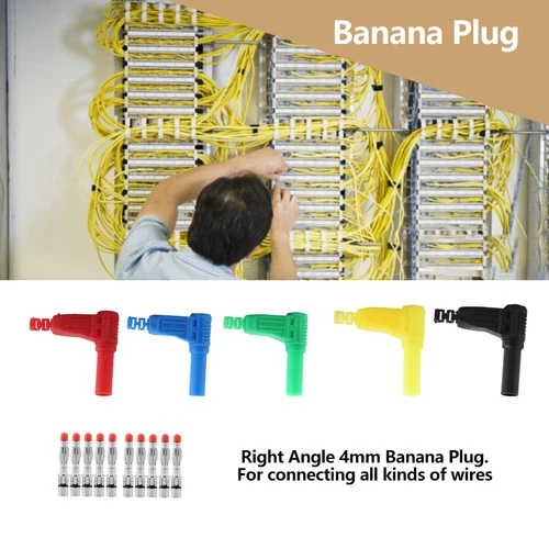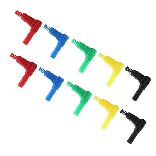 ༝10pcs P3014 4mm Banana Plug Safety Seal Protection Shrouded Right Angle Cable