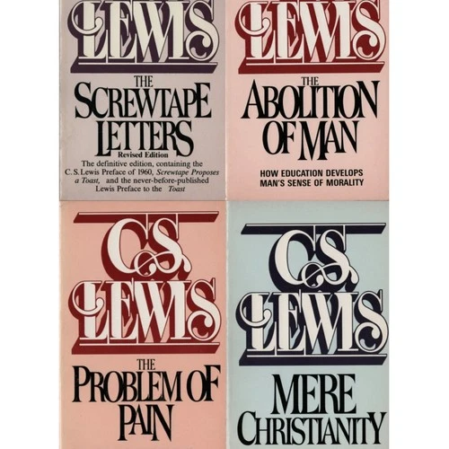 C.S. Lewis 4x Paperback Book Lot Christian Apologetic Religious Novel Bundle Set