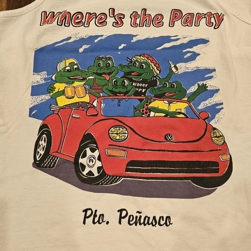 VTG 90s Penasco Mexico Vacation Party Tank Funny Alligator Graphic Beer Drinking