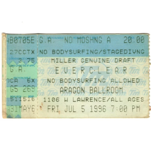 EVERCLEAR & TRACY BONHAM & 7 YEAR BITCH Concert Ticket Stub CHICAGO 7/5/96 Rare