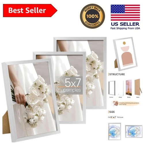 Elegant 5x7 Silver Picture Frame Set of 3 - High Definition Glass Display