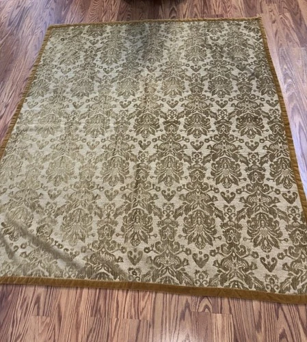 Vintage Damask Ornate Old World Throw Olive/Brown Oversize Throw 59” x 50”