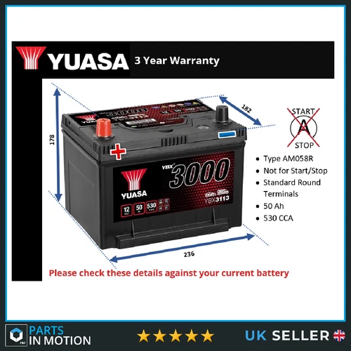 Battery fits JEEP PATRIOT MK74 2.4 08 to 17 Yuasa AM058R 530A 50Ah 3Yr Warranty
