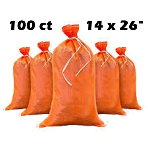 100 Sand Bags 14 x 26 in Flood Control 50 LB Sand Bags, Orange