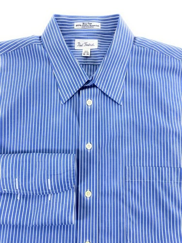 Paul Fredrick Men Easy Care Broadcloth French Cuff Blue Stripe Dress Shirt 18-36