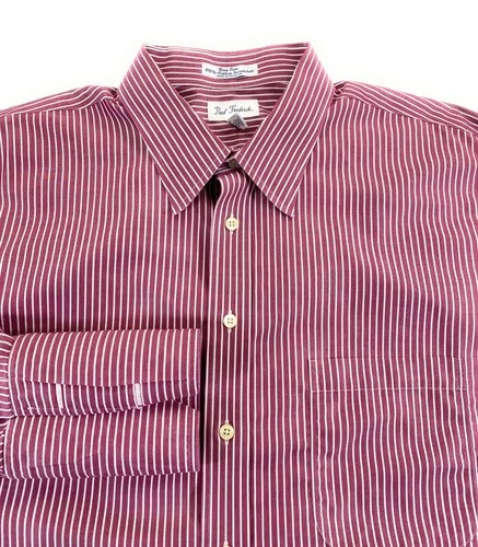 Paul Fredrick Men Easy Care Broadcloth French Cuff Red Stripe Dress Shirt 18-36