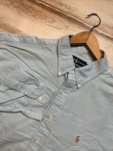 Ralph Lauren Yarmouth Long Sleeve Button Down Shirt Men's 18 34/35 Blue H5