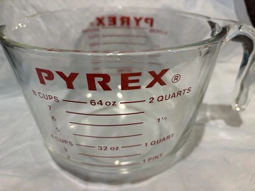Vintage PYREX Measuring 8 Cup Glass 64oz Red Lettering Large 2Qt -Excellent Cond