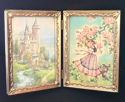 Vintage Ornate Brass Gold Tone Bifold Hinged 5x7” Double Picture Frame