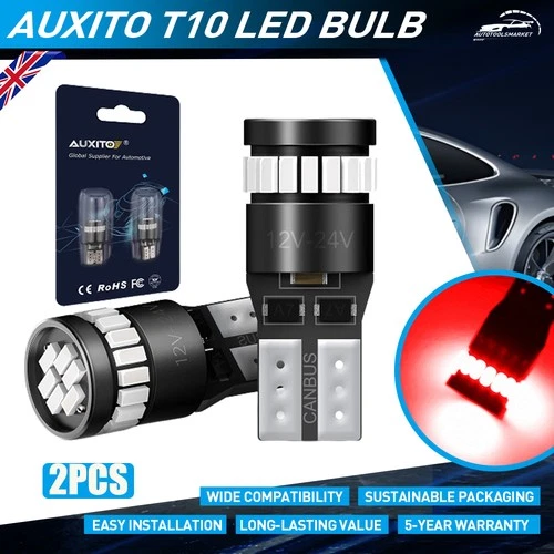 2x AUXITO T10 168 194 192 2825 LED Side Marker Light Bulbs Red Canbus Error Free