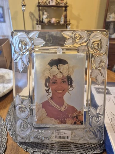 Mikasa Blooming Rose Crystal Glass Frame .new In Box 5"x7" Original Price $45