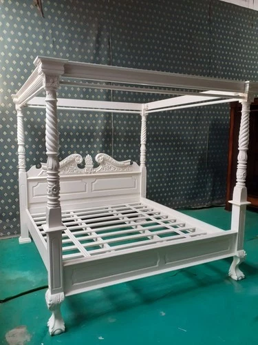 6' Super King OFF WHITE Queen Anne style four poster mahogany designer bedframe