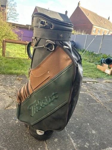 Titleist Vintage Leather Cart Bag 6 Way Divider Strap Golf Bag Green/Brown/Navy