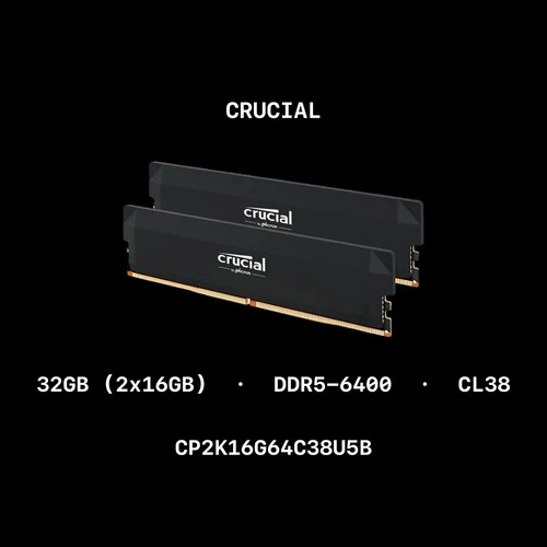Crucial Pro 32GB (2x16GB) DDR5 6400MHz CL38 RAM Black