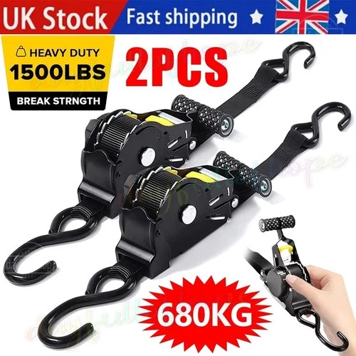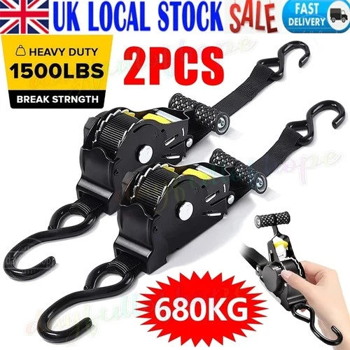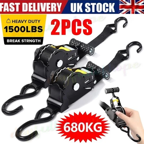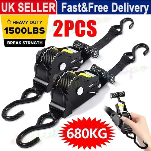 2PACK Automatic Ratchet Tie Down Straps 680kg Car Roof Belt Quick-Release Adjust