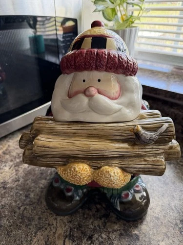 Sakura Debbie Mumm Woodland Santa Ceramic Cookie Jar 12in