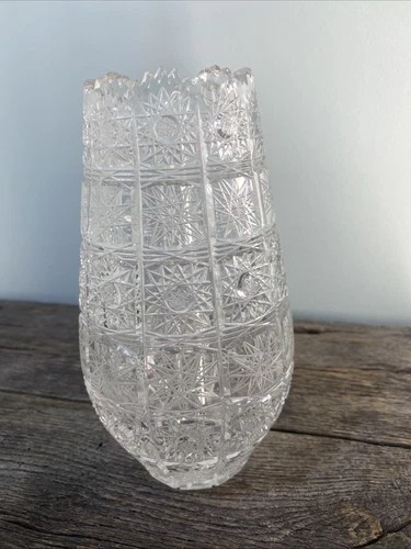 Bohemia Crystal Queen Lace Vase Hand Made In Czechoslovakia Vintage