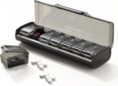 7 Day Pill Box Small Travel Medication Organizer Black Abs Waterproof