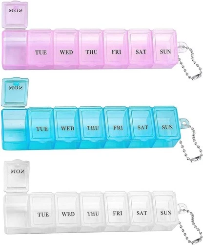 3x Pill Box 7 Day Medication Box Compact Moisture Resistant Travel