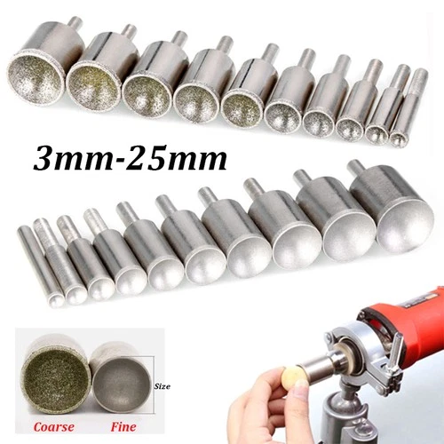 3mm-25mm Diamond Burr Grinding Bit Fine Coarse Cylinder Concave for Bead Shaping