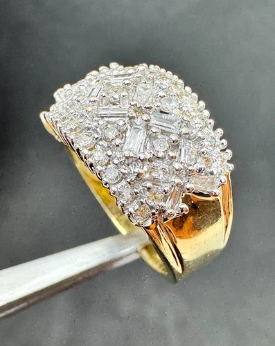 10K Yellow Gold Ring with Round and Baguette Diamonds