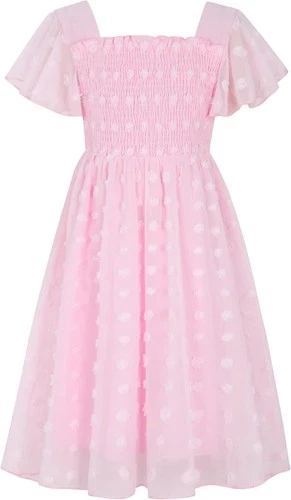 Kids4ever 6-12T Girls Chiffon Dress with Solid Pom Poms &