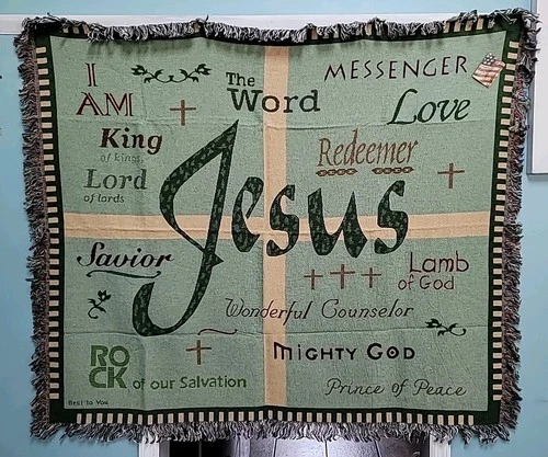 MWW Names Of Jesus Woven Tapestry Christian Blanket Throw 55 X 72 NEW
